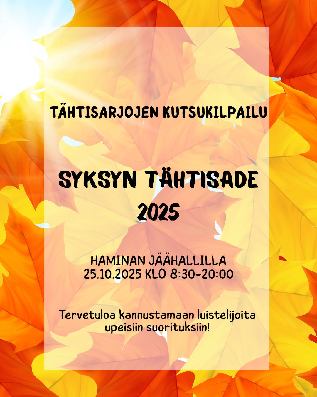 Syksyn Tähtisade 2025 tuo loistoa Haminan jäälle! Haminan jäähalli täyttyy säihkeestä ja taidokkaista ohjelmista, kun Syksyn Tähtisade 2025 – Tähtisarjojen kutsukilpailu järjestetään lauantaina 25.…