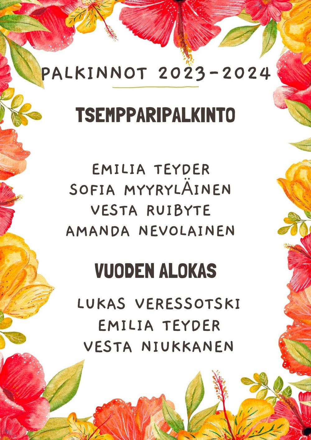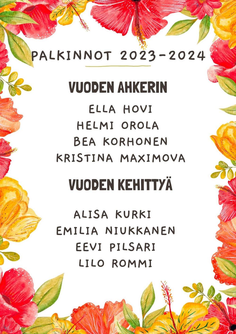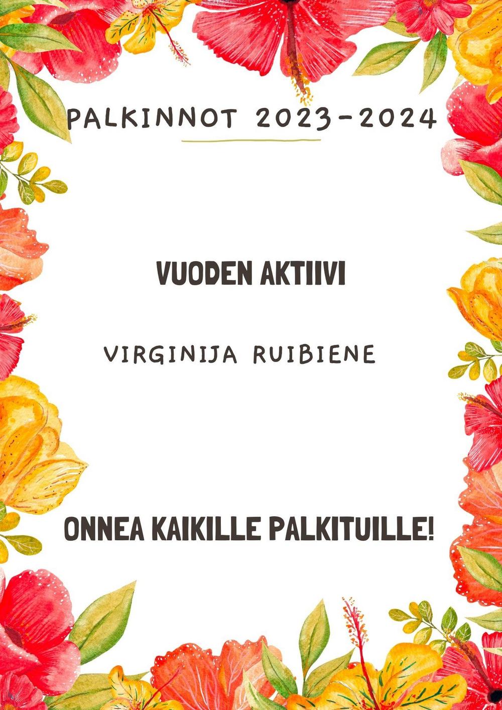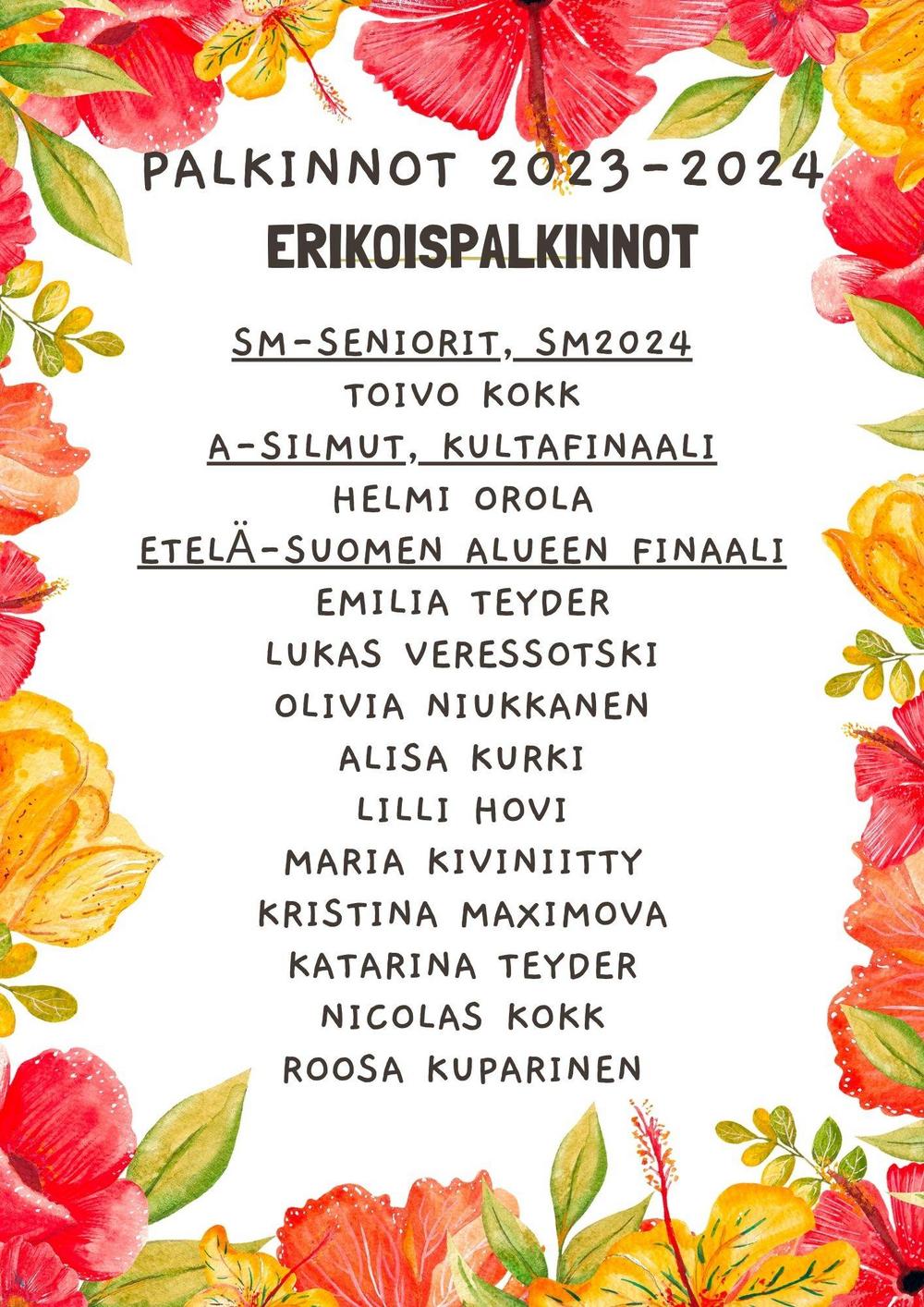 Seuran palkinnot